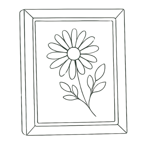 These pieces are made from pressed flowers from the Reflora Designs studio. You submit your photo, stories, and color preferences and we decorate your photo using the language of flowers.